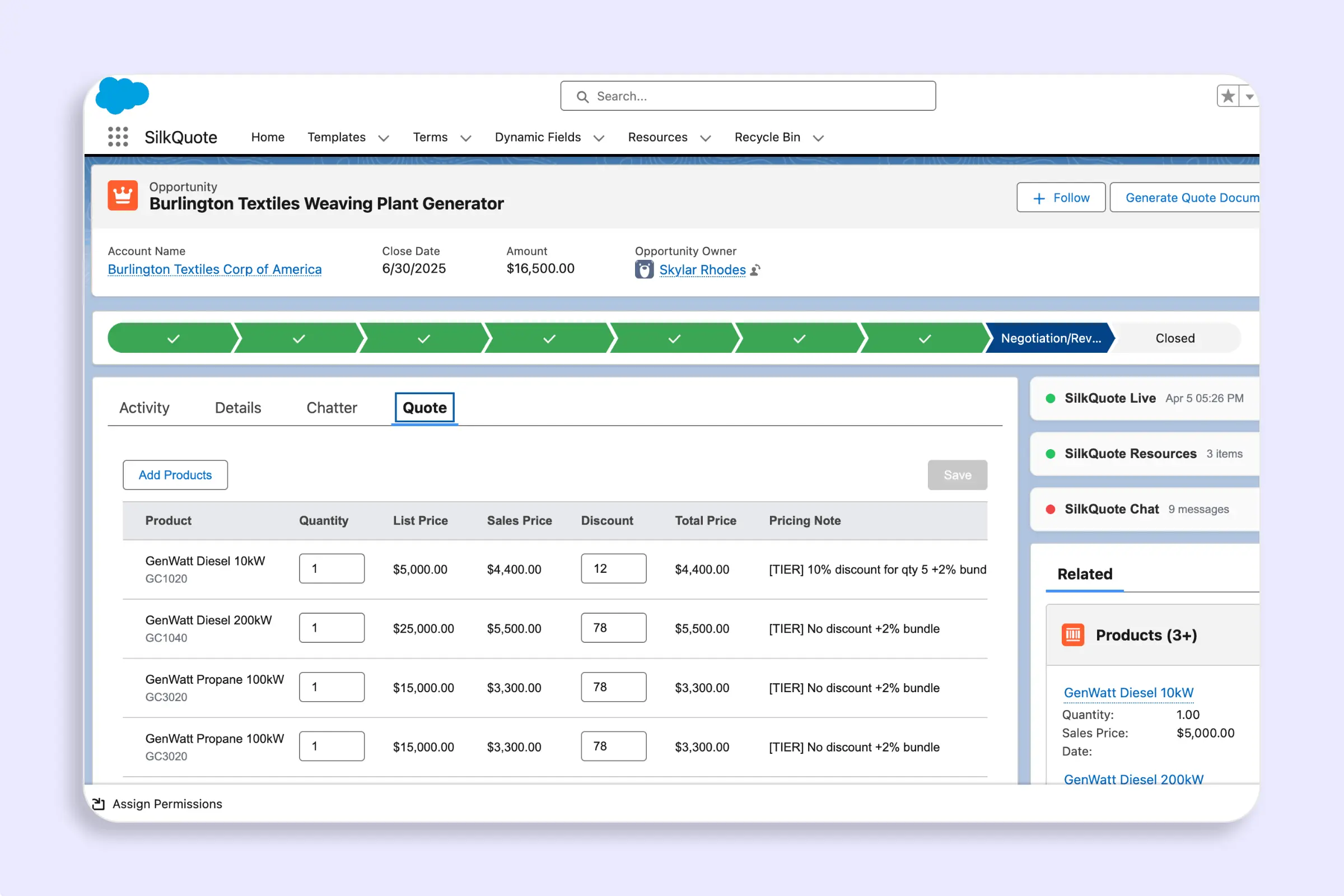 Adding Products to the Quote