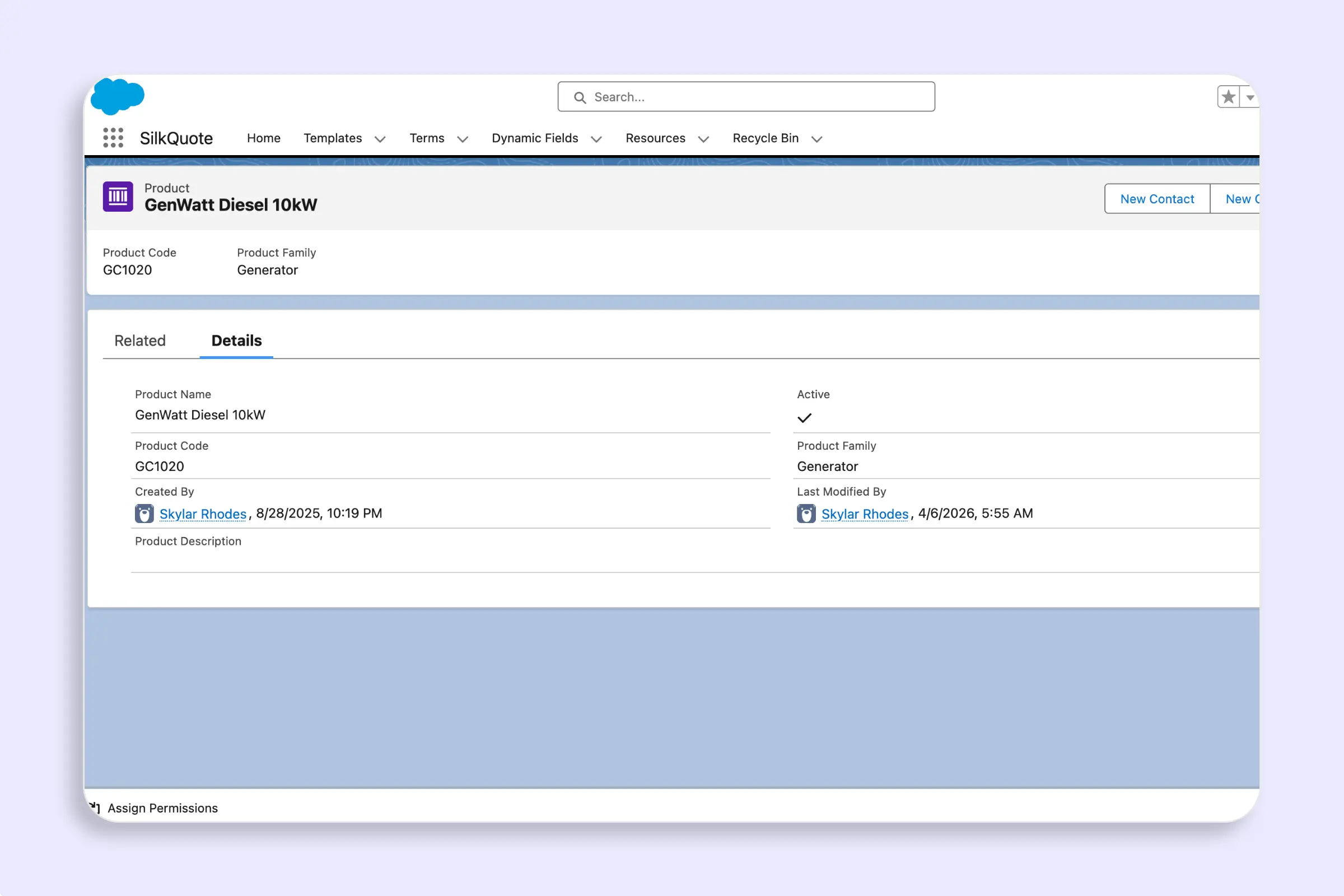 Both the SilkQuoteAdmin and SilkQuoteUser permission sets include read access to Product_Bundle_Item__c and its two lookup fields. No additional permission setup is required.